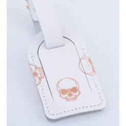 LEATHER LUGGAGE TAG WHITE ROSE GOLD SKULLS