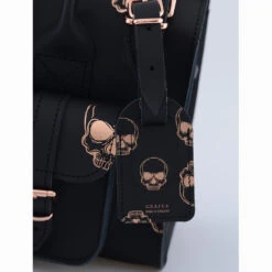 LEATHER LUGGAGE TAG ROSE GOLD SKULLS